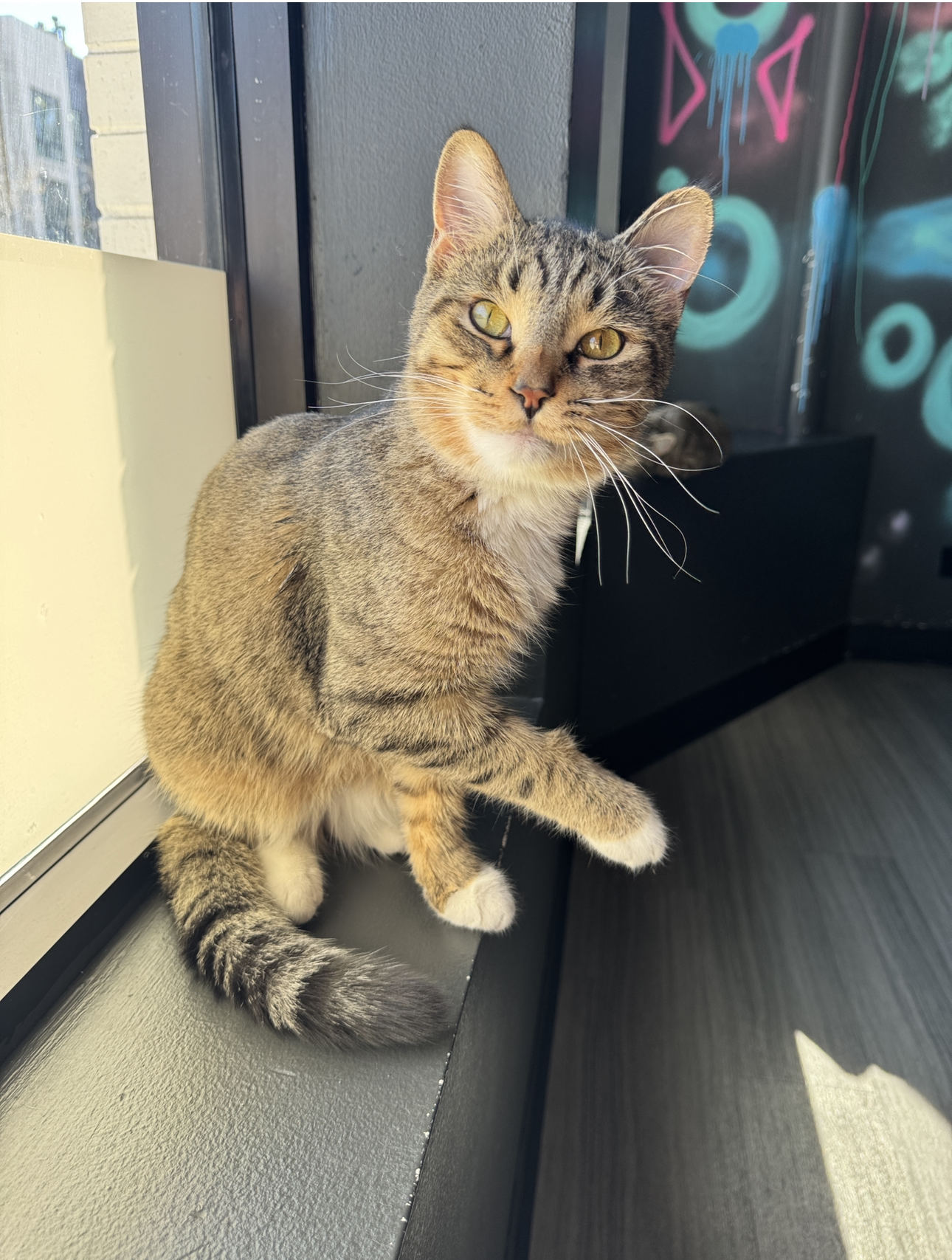 I have a lot of energy and need a young cat friend in the home. I’d make a good fit with my sister Moira.