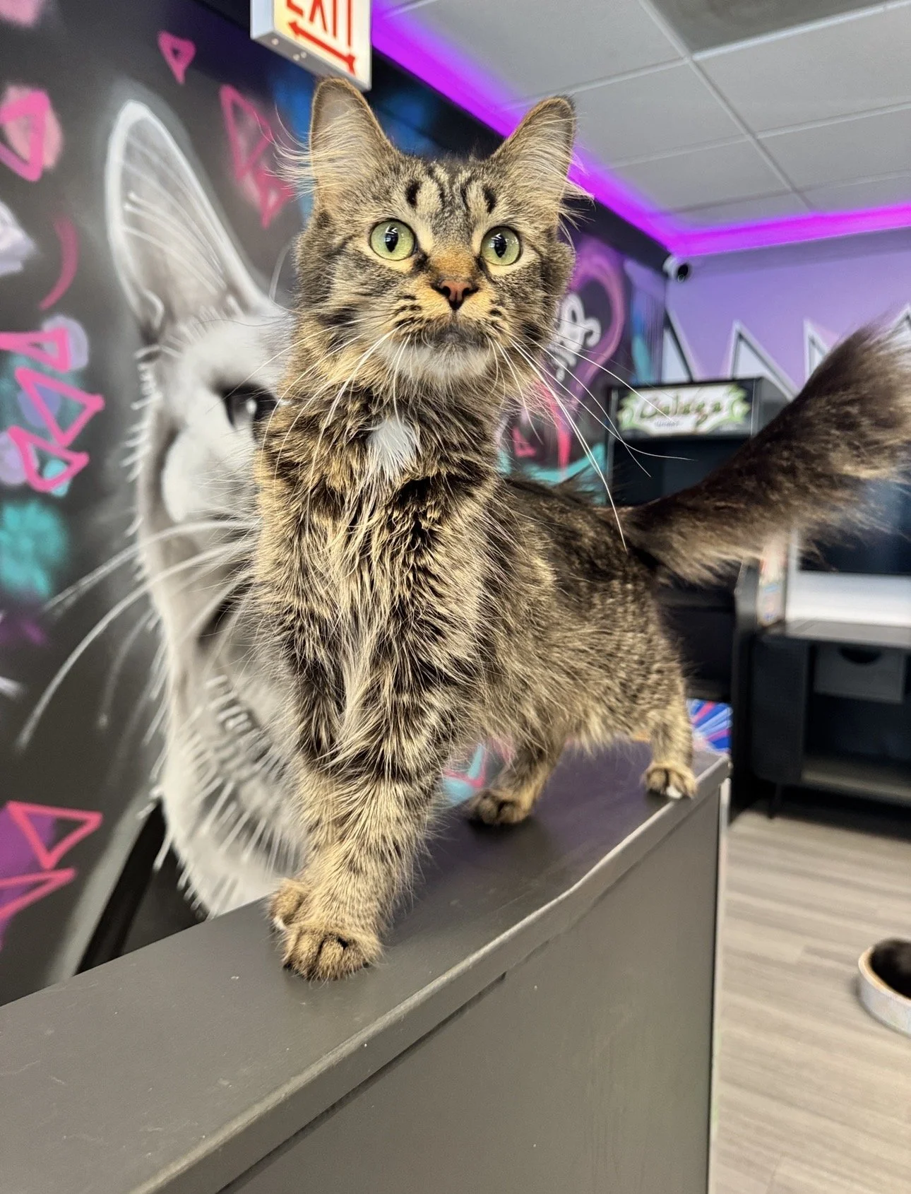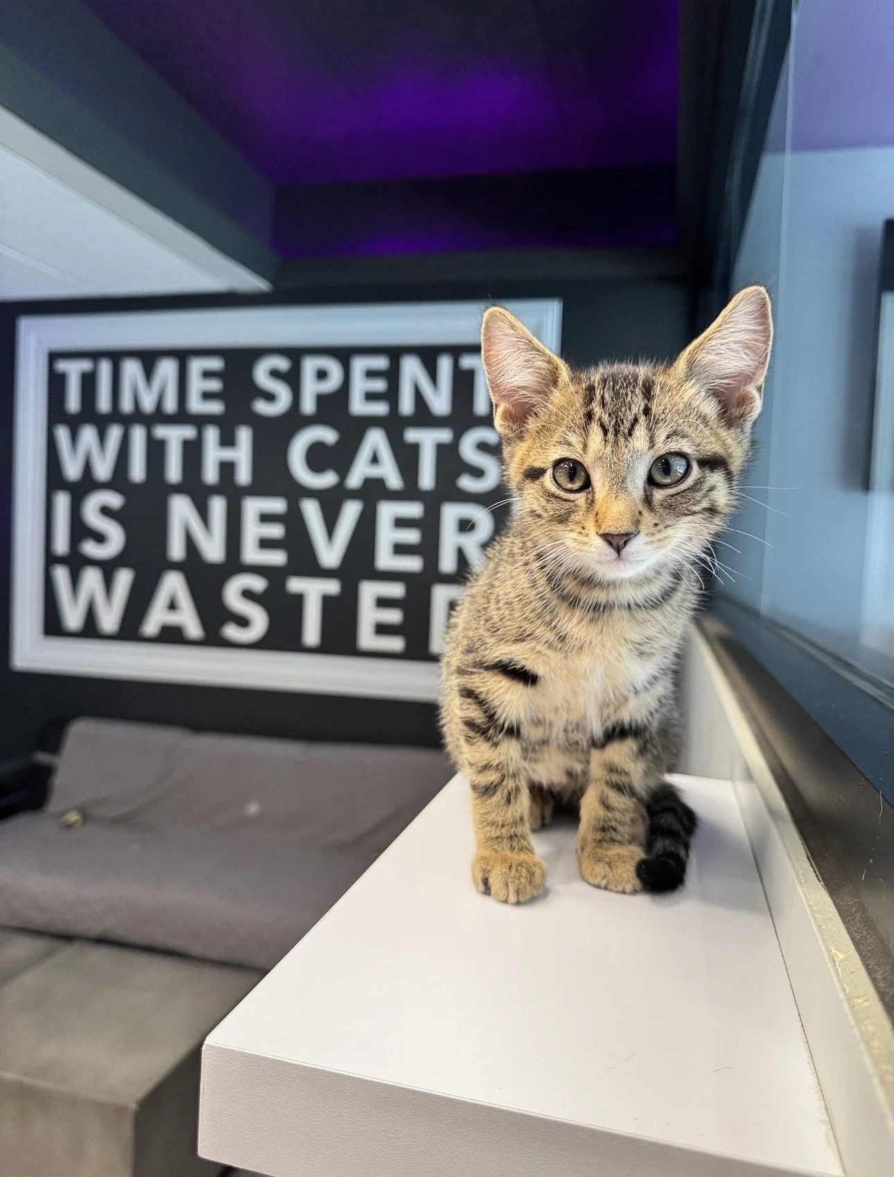 We typically have around 15-20 adoptable cats available for adoption in our lounge. New cats come to the lounge every Tuesday!