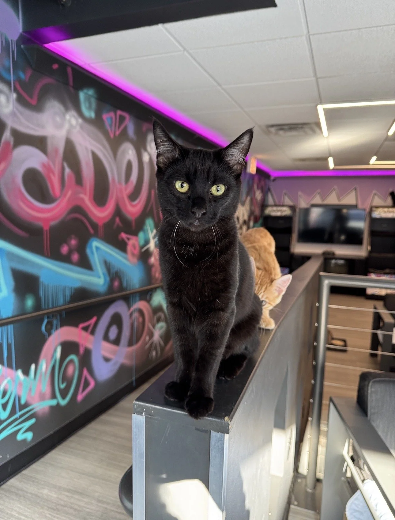 Adoptable cats in our lounge