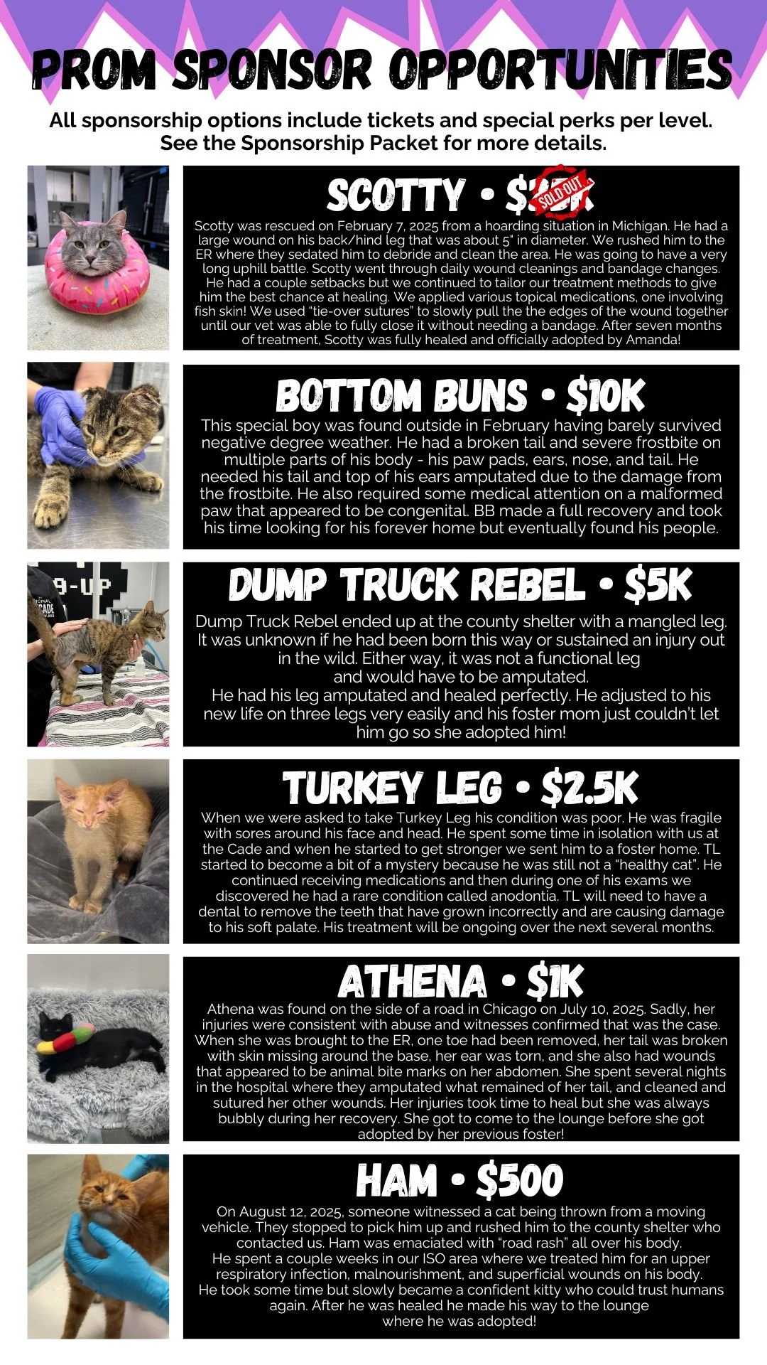 Don’t want to wait for tickets to go on sale? Consider becoming a Prom Sponsor to secure tickets and help support kitties.