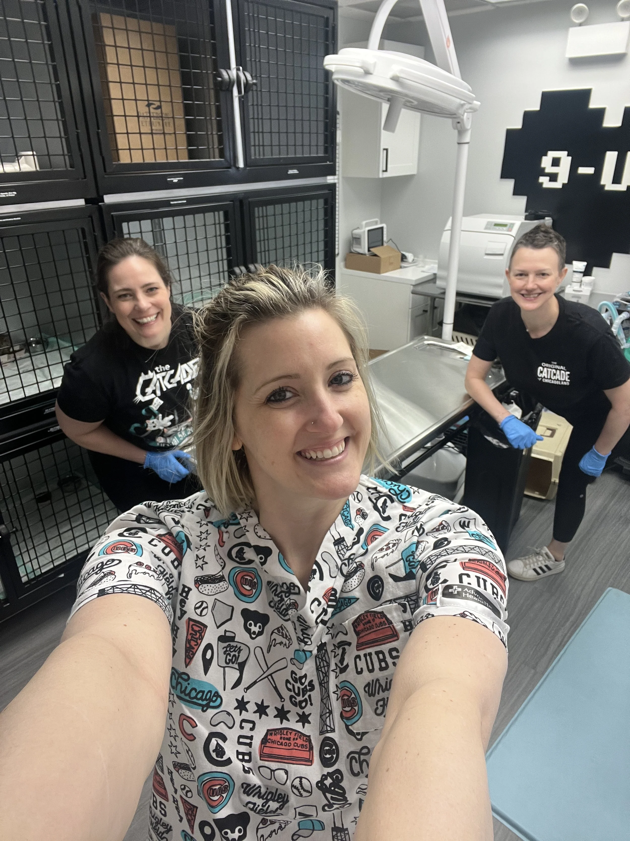 We are now accepting volunteers to work alongside us and help us with intake. Intake is when we get a group of new cats in from county shelters and have to do exams, medications, and get them ready to head to their foster home. Sometimes this may just be 1 or 2 cats or as many as 20 cats at once.